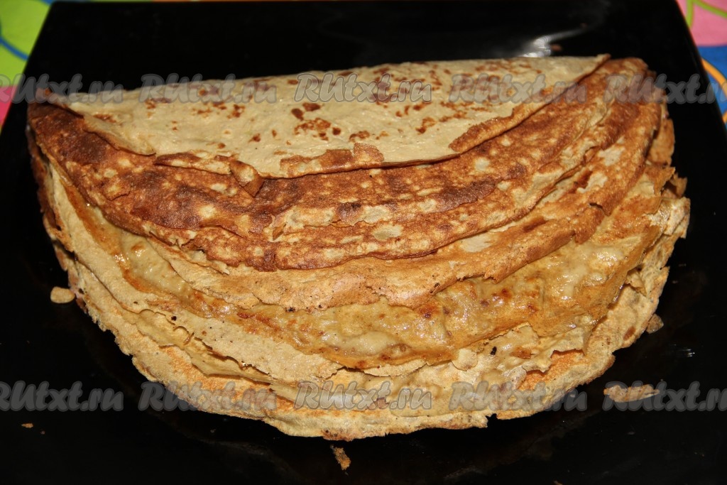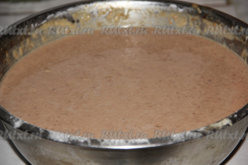 Хорошенько перемешать и оставить для отдыха на 20 минут. Это важно, для дальнейшего выпекания блинов. Тесто получится не густым, но и не слишком жидким, оно будет напоминать обычное блинное тесто.