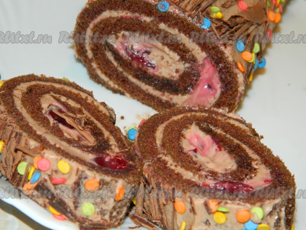 Бисквитный шоколадный рулет получается прекрасным на вкус.