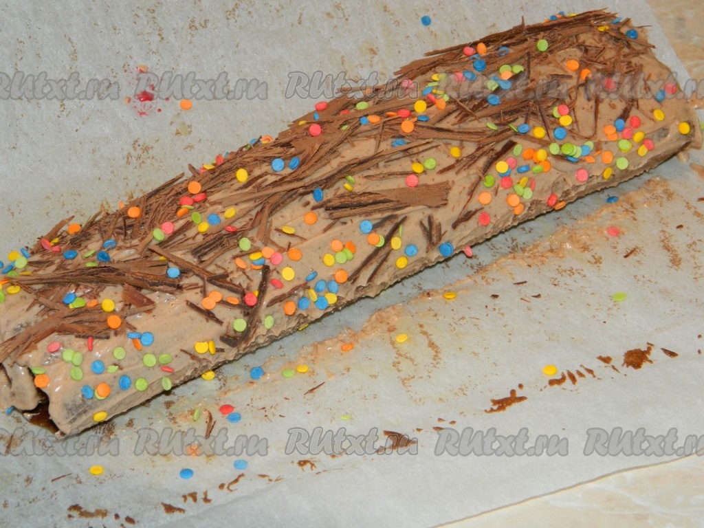 Рулет обмазать оставшимся кремом и украсить по желанию. Убрать в холод для застывания.