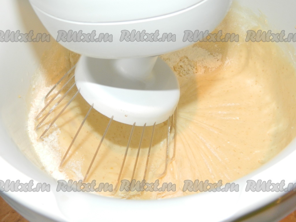 Для приготовления теста взбить миксером яйца с сахаром в течение 3-4 минут.