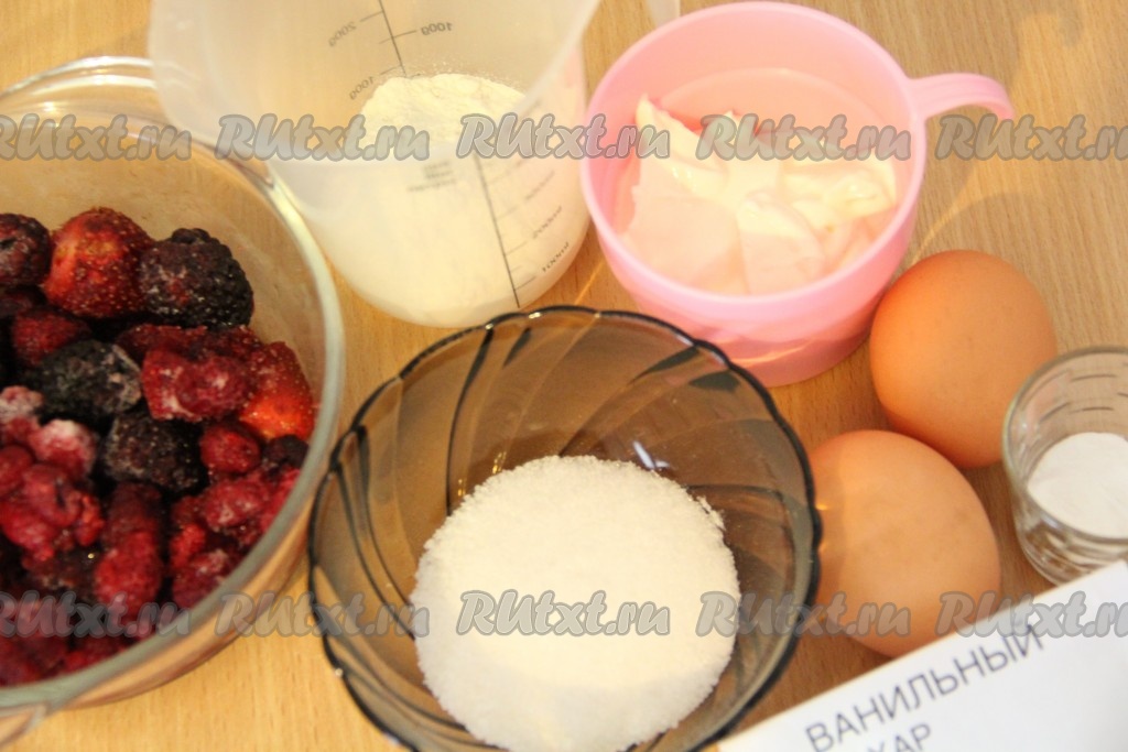 Подготовить продукты для приготовления запеканки. Если будете готовить с замороженными ягодами, тогда их нужно разморозить, а лишнюю жидкость слить.