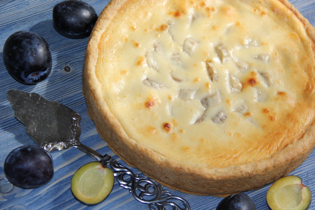 Рецепт этого пирога с творогом и фруктами пришёл ко мне от моей подруги. Вроде всё просто, песочное тесто, фрукты по сезону и творожная заливка. Но вкус этого пирога оставил очень хорошие отзывы у моей семьи. Пирог получается нежным, с тонким хрустящим коржом. Фрукты можете выбрать по вкусу, в этот раз я готовила с бананами и сливами. Нежность бананов и кислинка сливы придают особую нотку этой выпечке. Попробуйте испечь такой пирог и я уверена, он не оставит Вас равнодушным.
