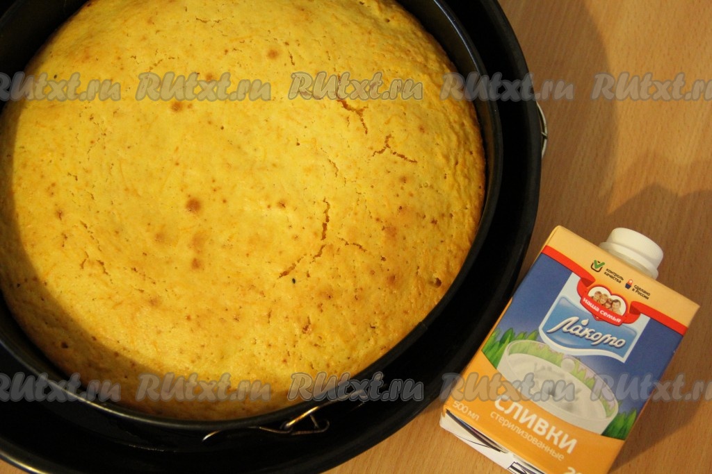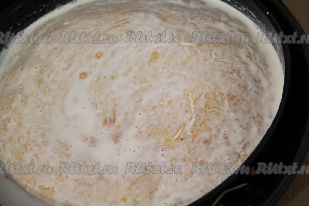 Горячий пирог полить сливками и оставить в форме до полного остывания.