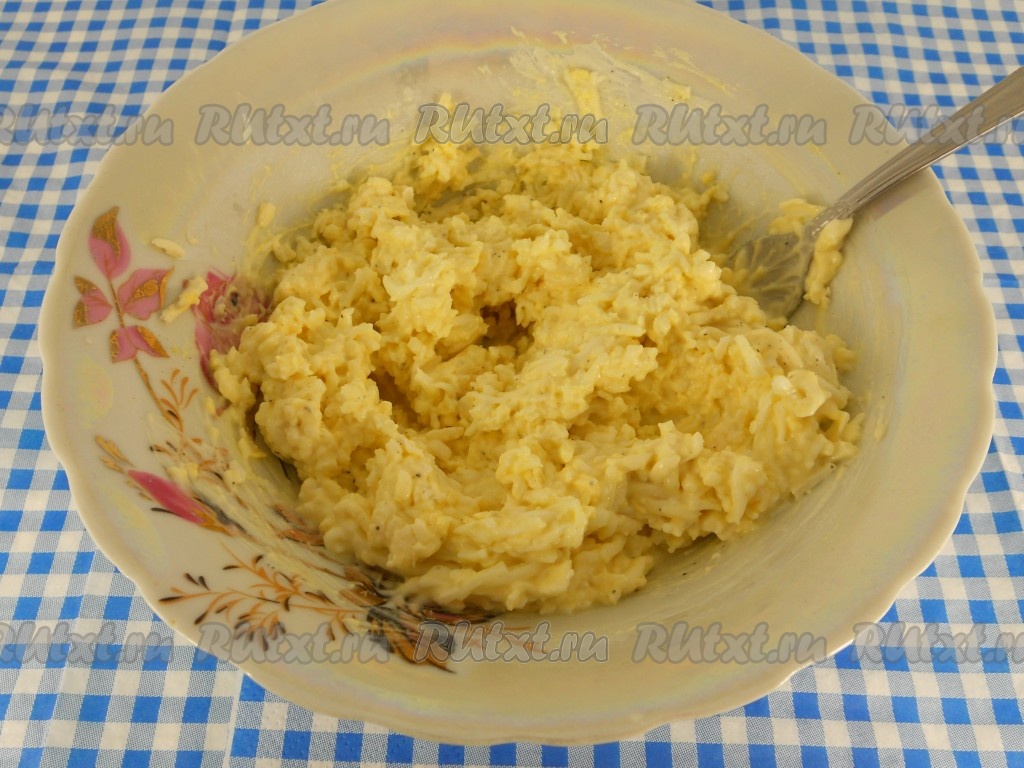 Заправить сырно-яичную массу майонезом (или сметаной), тщательно перемешать.