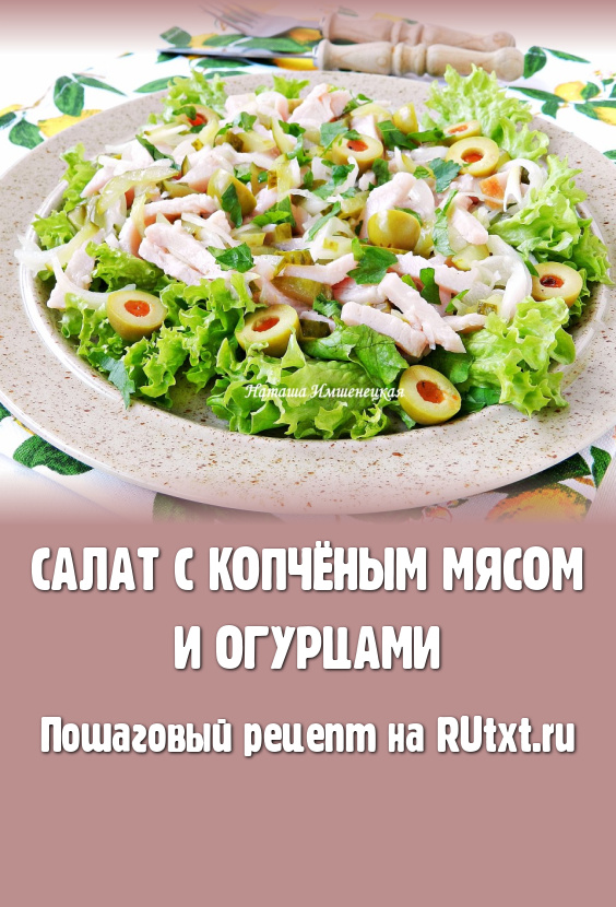 Вкусный и пикантный салат с копчёным мясом и огурцами готов. Это блюдо очень гармонично впишется в праздничное меню и, наверняка, понравится и вам, и вашим близким.