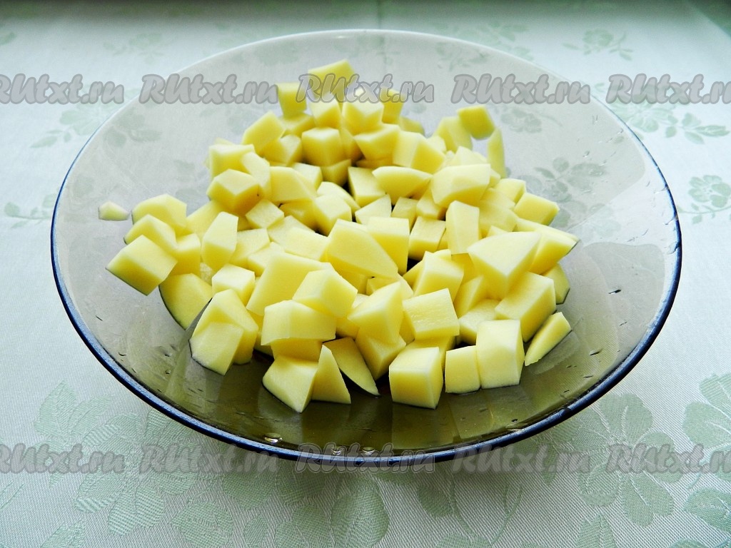 Картофель очистить и нарезать небольшими кубиками.