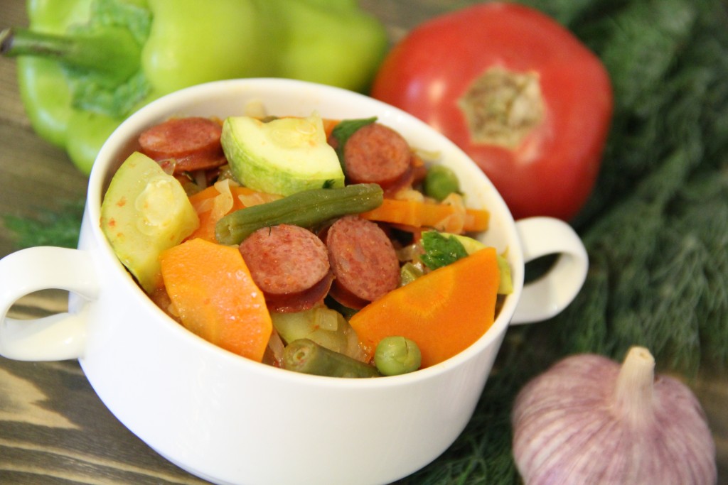 Хочу поделиться замечательным рецептом приготовления овощного рагу с колбасой. Я готовила с охотничьими колбасками. Такое блюдо можно приготовить не только летом, но и зимой, только использовать замороженные овощи. Рагу получается очень вкусным с ароматом копчёных колбасок и превосходно подходит для сытного ужина.