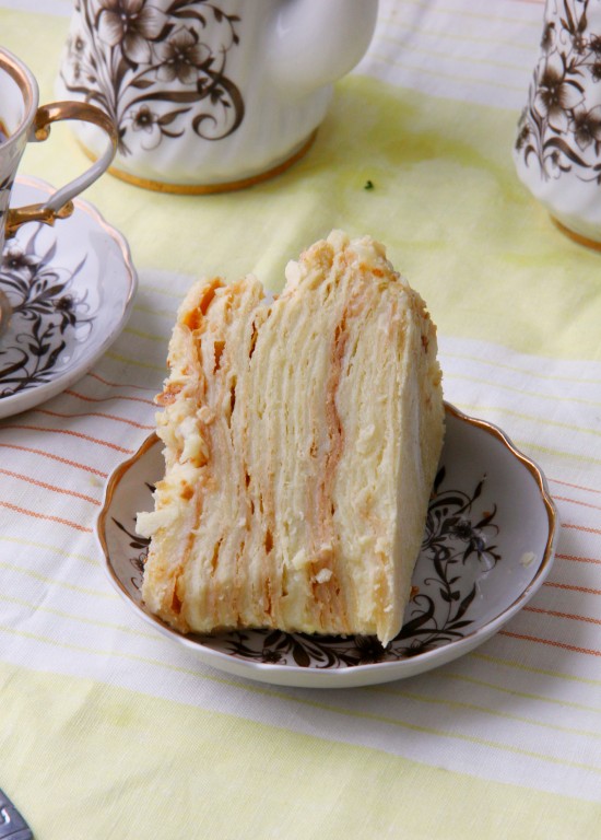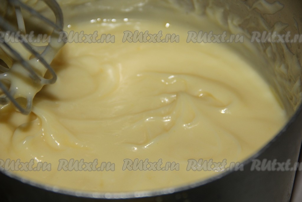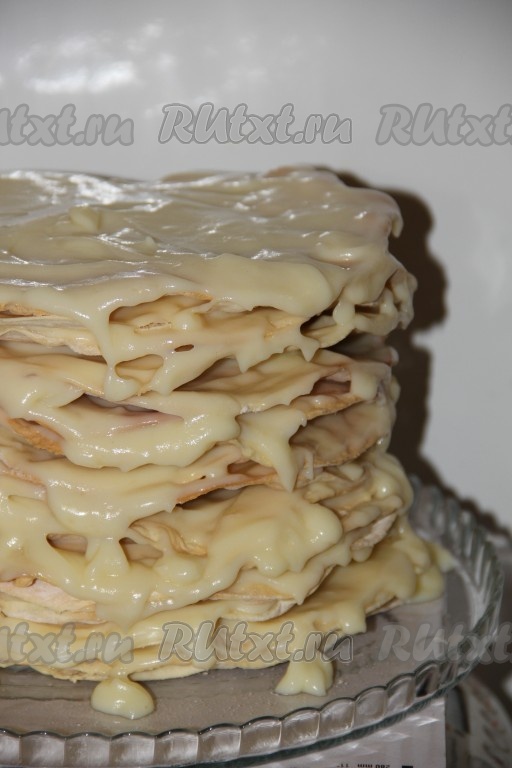 Готовым кремом "Пломбир" перемазать тщательно коржи Наполеона.
