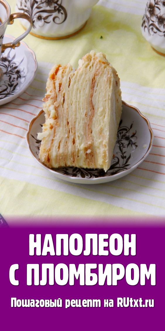 1-2 коржа можно оставить и не промазывать, перемолоть их в крошку и посыпать торт. Дать Наполеону с пломбиром пропитаться ночь (лучше сутки) и можно подавать к столу изумительно вкусное лакомство.
