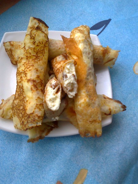 Наши супер тонкие блинчики, замешанные на крахмале, молоке и муке, готовы.