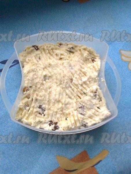Приготовьте творожную начинку (по желанию). Если кто-то не любит вкус творога, хорошо подойдёт начинка, приготовленная на пару или водяной бане. В такой начинке почти не чувствуется вкус творога. Для этого смешайте творог, изюм, яйцо, сахар и поместите в пароварку или на водяную баню на 20 минут.
