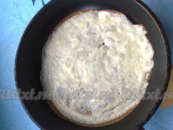 Дайте ему настояться в течение 30 минут. Это позволит набухнуть клейковине муки и ваши блинчики будут более эластичными, не будут рваться при выпечке. Блинную сковородку смажьте маслом только для выпечки первого блинчика. Все остальные блины выпекайте уже на сухой сковороде. Каждый раз перед выпечкой блинов размешивайте тесто, потому что крахмал может опускаться на дно миски. Вылейте на сковороду диаметром 20 сантиметров около 0,5 половника (или меньше) молочной смеси, равномерно распределите и выпекайте на среднем огне, пока края блинчика не зарумянятся.