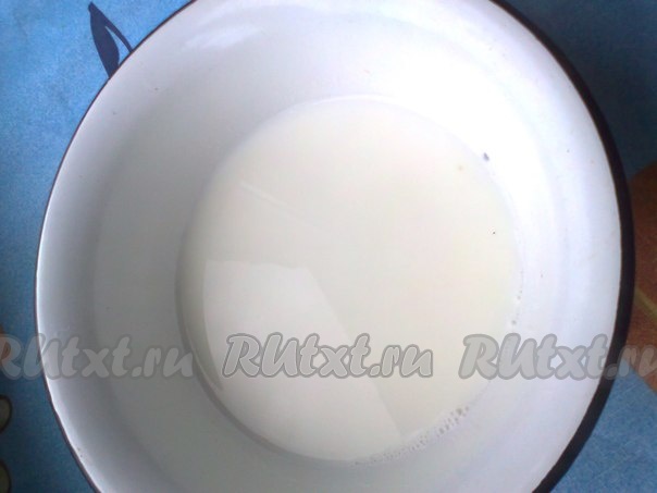 Молоко вскипятите. В достаточно глубокую миску отлейте 250 миллилитров молока, дайте немного остыть.