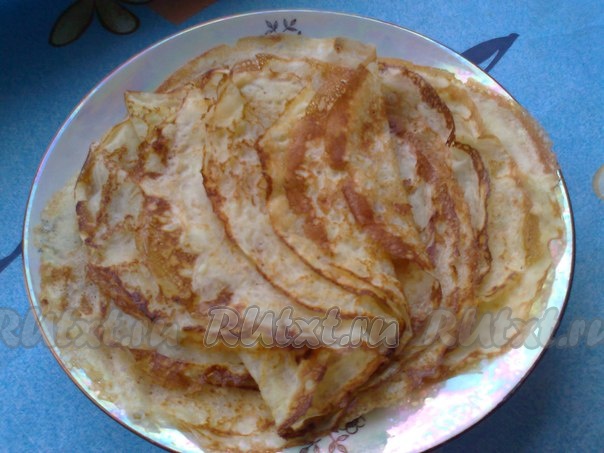 Складывайте готовые блины на блюдо, при желании, смазывая маслом.