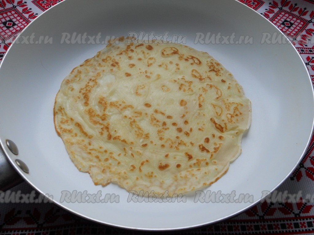 Свернуть блинчик плотно трубочкой. Таким образом подготовить все блины.