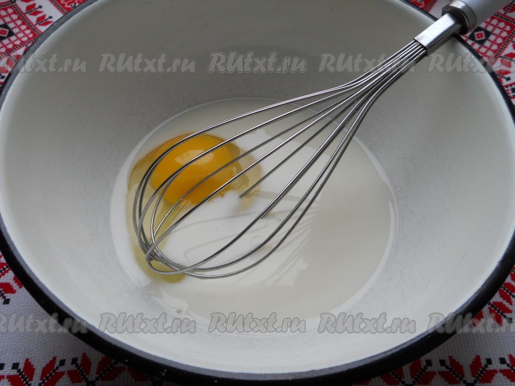 В половину нормы молока добавить яйцо, соль, сахар. Взбить венчиком.