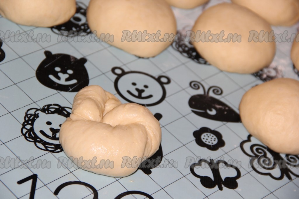 Перекрутить рулет несколько раз и связать в узелок. Аналогично сформировать булочки из оставшихся кусочков теста.