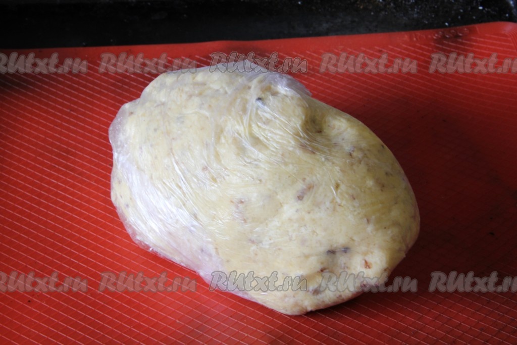 Замешанное тесто для орехового печенья завернуть в пакет и отправить в холодильник минимум на 1 час.