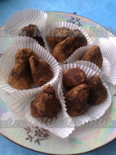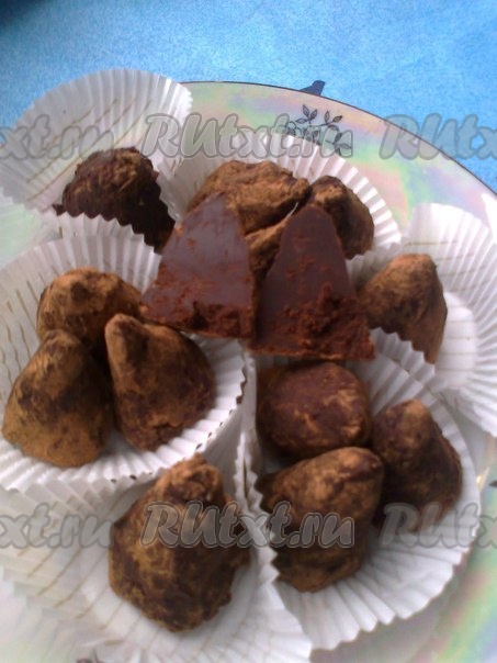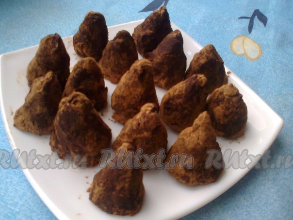 Охлаждённые трюфели, приготовленные из тёмного шоколада, можно обвалять ещё раз в смеси какао и пудры. При желании домашние конфеты можно выложить в бумажные формочки.