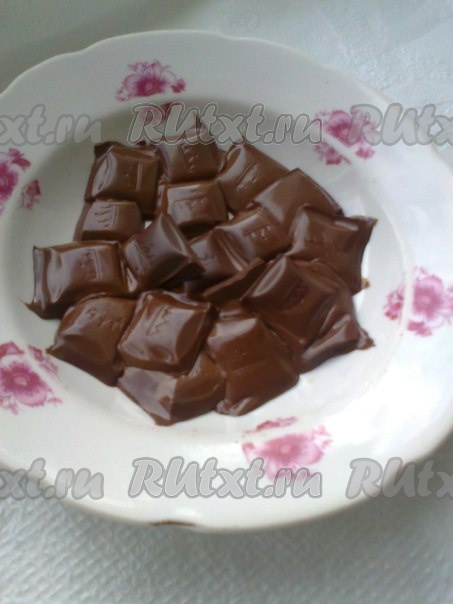 Тёмный шоколад поломать на кусочки и растопить на водяной бане.