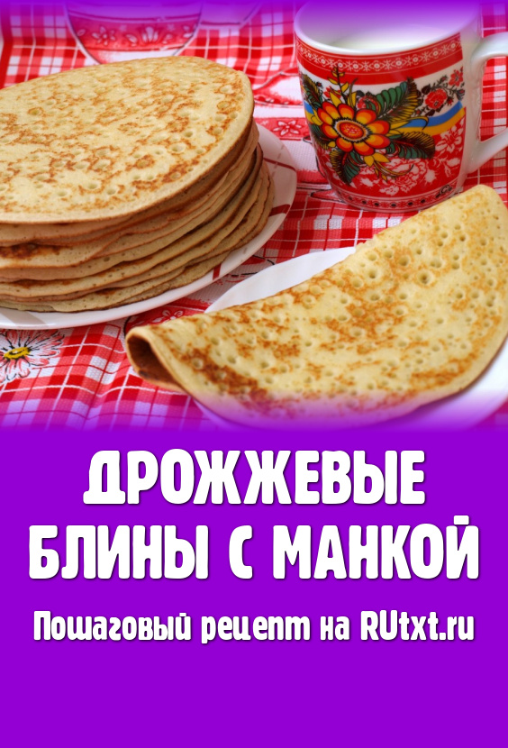 Сложить приготовленные дрожжевые блины с манкой стопочкой и подавать с чаем или молоком.