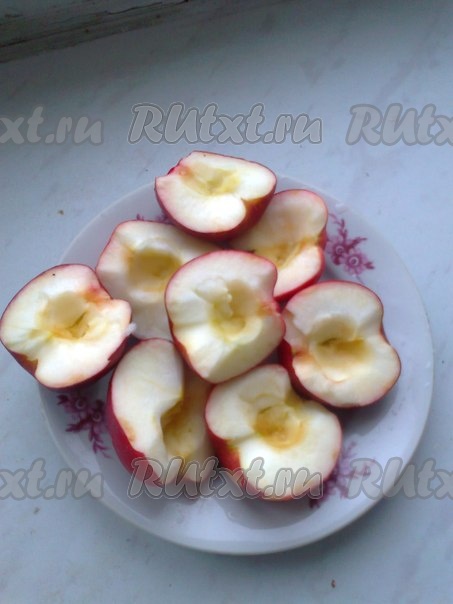 Приготовим начинку. Яблоки разрезать на половинки, удалить сердцевину.