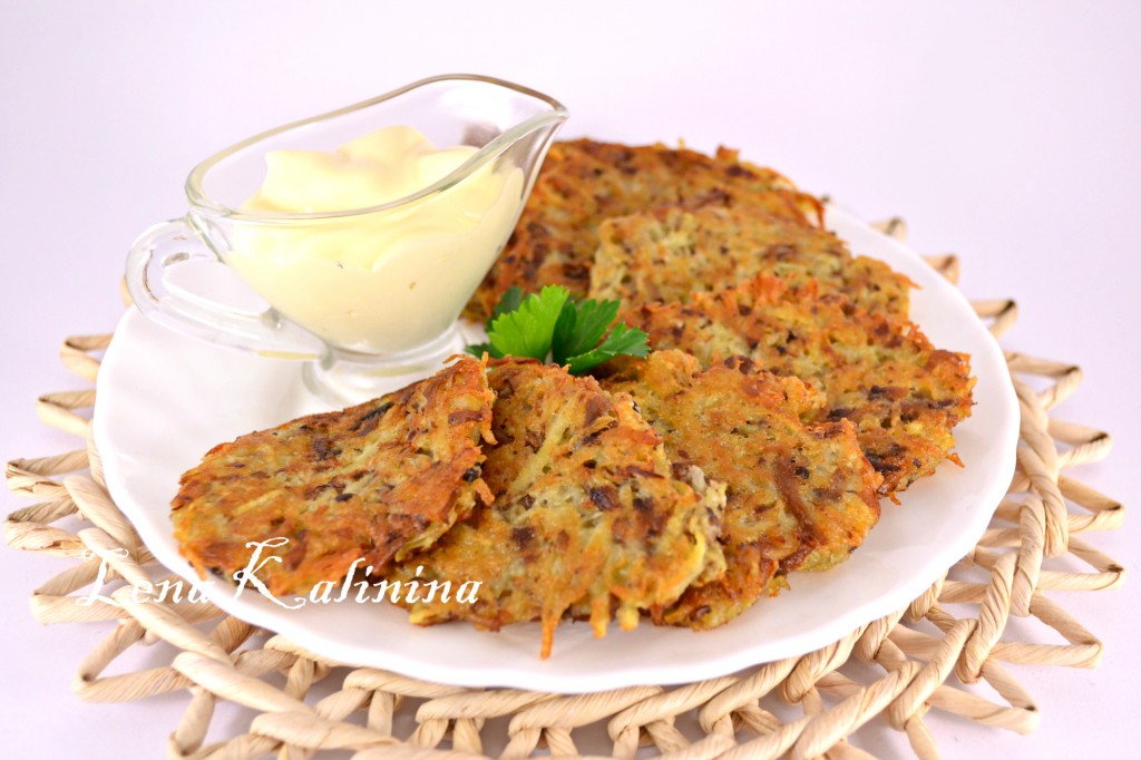 Подавать необыкновенно вкусные, хрустящие картофельные драники с грибами в горячем виде со сметаной или сметанным соусом.