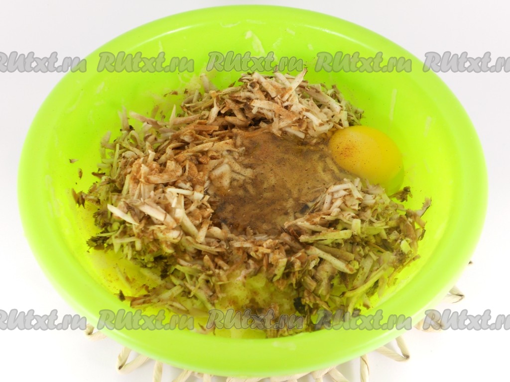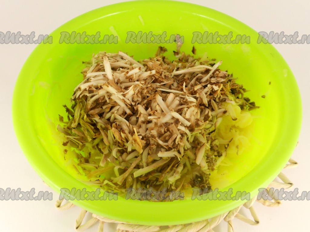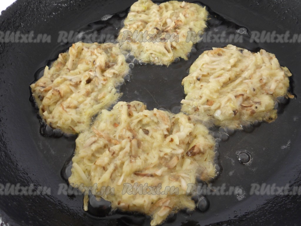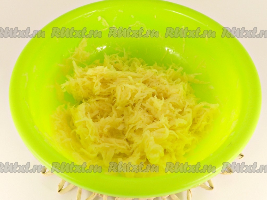Картофель натереть на средней терке, посолить, отжать.