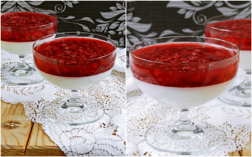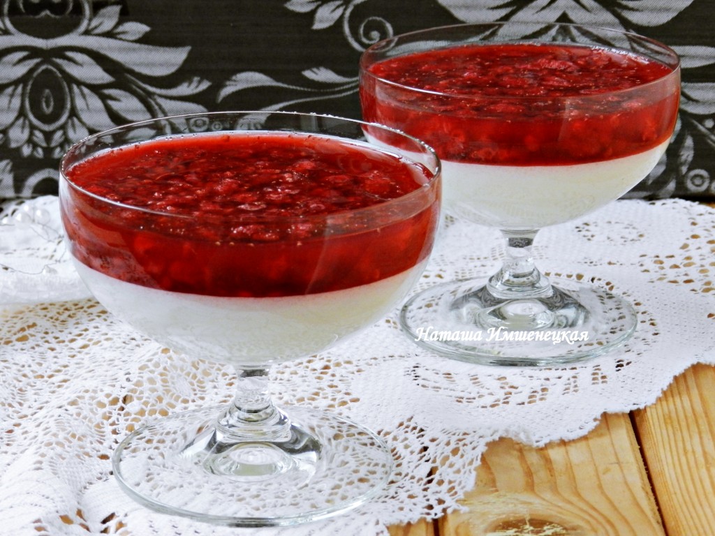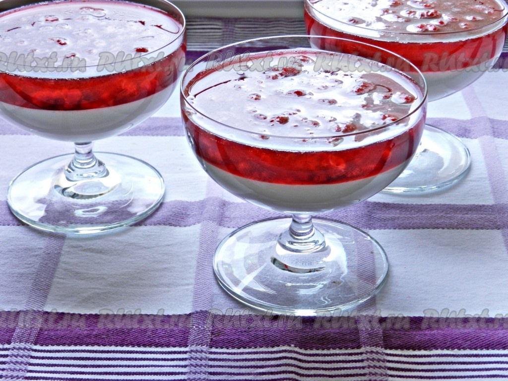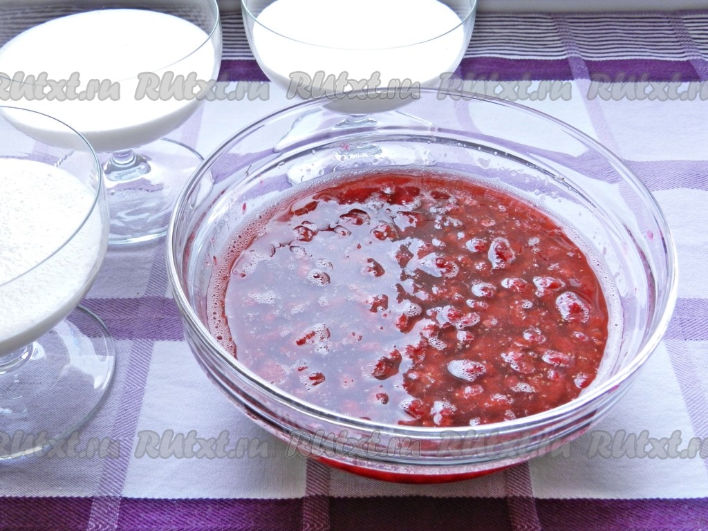 Ягодный слой аккуратно залить поверх застывшего сливочного слоя. Убрать креманки в холодильник до полного застывания ягодного слоя (примерно часа на 2).