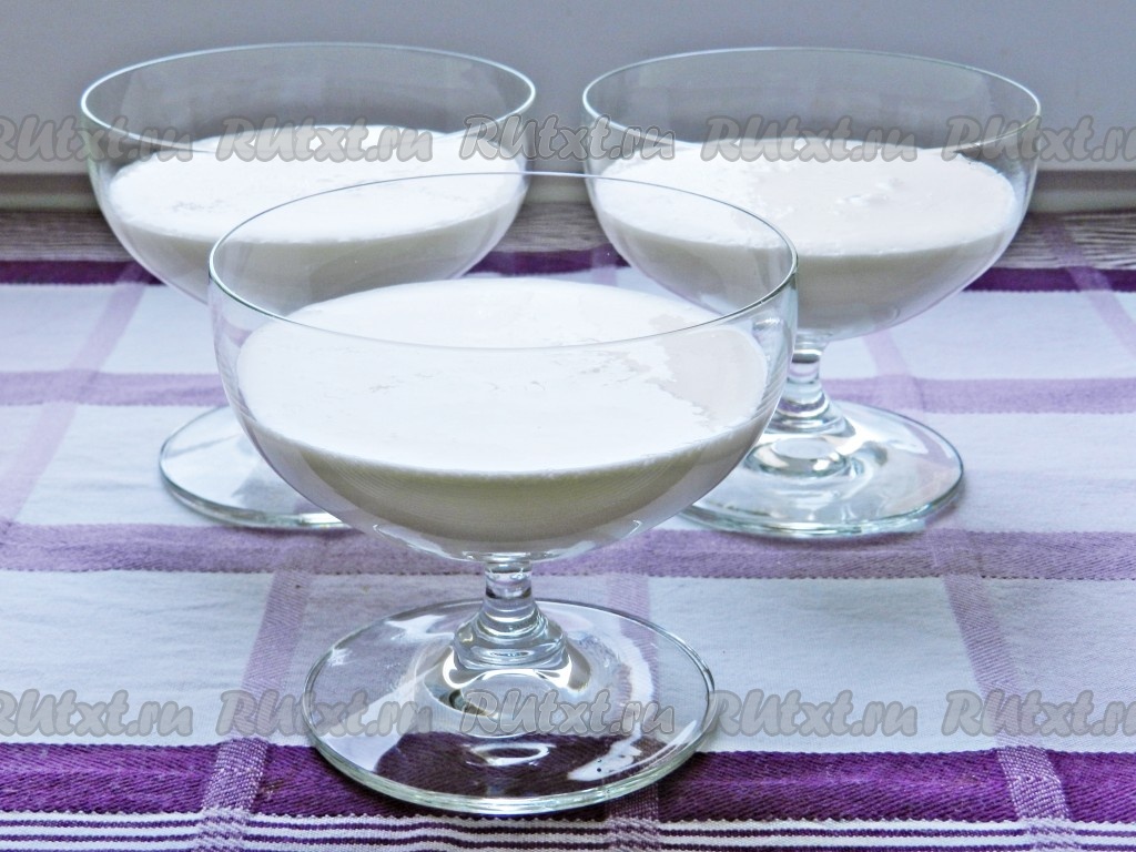 Разлить получившуюся смесь из сливок с желатином по креманкам, заполняя их до половины (я разлила по 3 формам). Убрать в холодильник до полного застывания (на 1,5-2 часа).