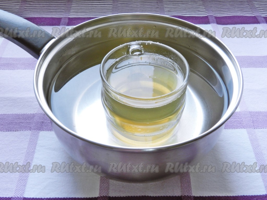В стакан влить 150 миллилитров холодной воды, всыпать 1,5 столовых ложки желатина, хорошо перемешать и оставить минут на 15 для набухания желатина. Стакан с желатином, набухшим в воде, поставить на водяную баню, прогреть желатиновую массу, помешивая, до полного растворения желатина.