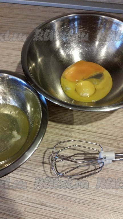 В отдельной посуде взбить белок с солью до образования пенки.