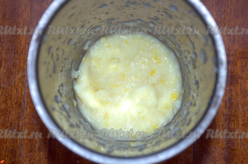 Лимон помыть, порезать небольшими кусочками и измельчить в блендере.