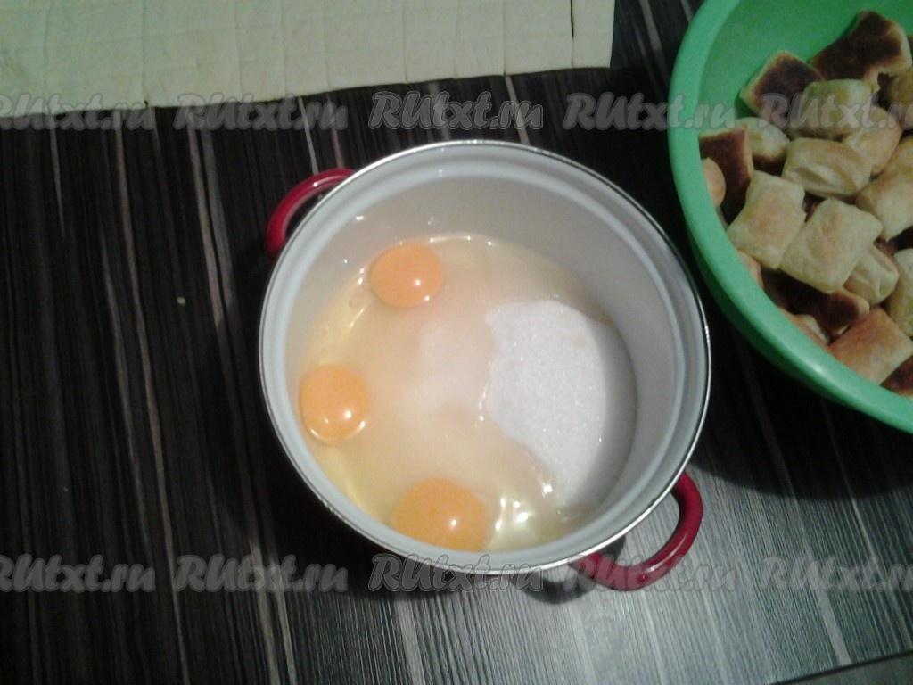 Для приготовления крема взбить яйца с сахаром в густую массу, затем добавить муку. В другой миске вскипятить молоко, добавить масло. Кипящее молоко влить в массу, взбивая миксером.