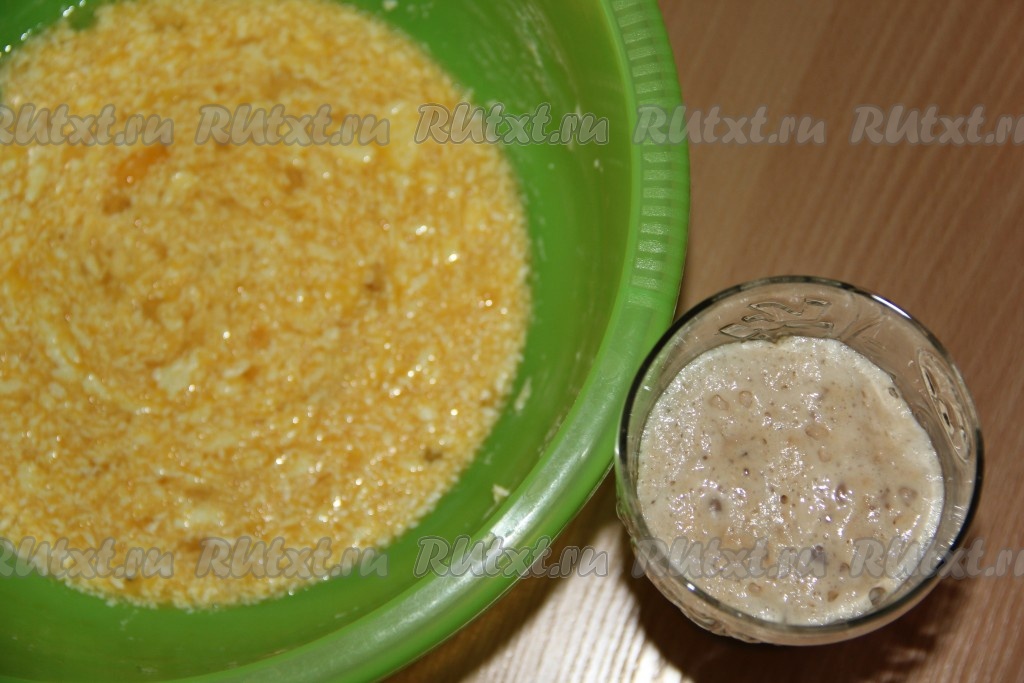 Размягченное масло хорошо перетереть с сахаром до однородности.