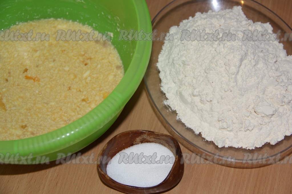 В жидкую смесь всыпать небольшими порциями муку. Замесить эластичное, мягкое и нежное тесто. Хорошо его вымесить до однородного состояния.