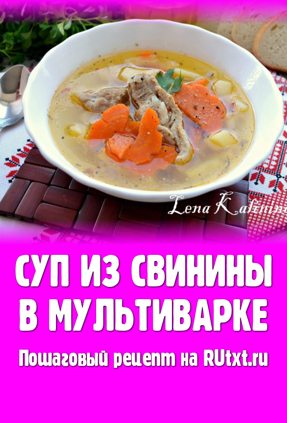 Суп из свинины в мультиварке - замечательное первое блюдо для разнообразия вашего повседневного стола. Суп получается сытным, ароматным и очень, очень вкусным не смотря на совершенно простые продукты. Попробуйте!