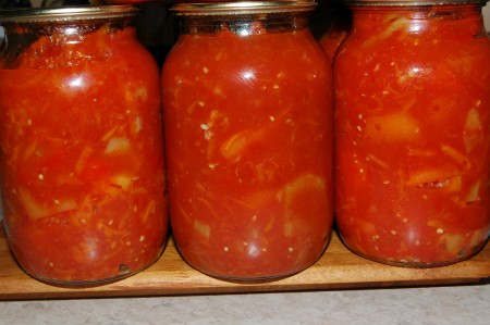 После чего варим еще 20 минут, затем добавляем все остальные компоненты (острый перец очень мелко режем), перемешиваем и через 5 минут раскладываем наше лечо по стерилизованным банкам (я разложила по 8 литровым банкам). Закрываем металлическими крышками, закатываем, переворачиваем, укутываем в одеяло, оставляем до полного остывания, а затем убираем на хранение. Баночки прекрасно хранятся и без холодильника, так что о хранении нашего лечо можно не беспокоиться. А холодной зимой яркий цвет и замечательный вкус лечо придаст нам энергии и напомнит о неминуемо приближающемся лете!