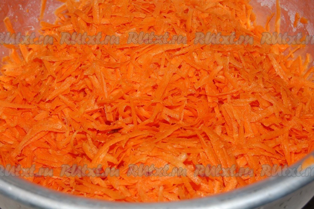 Отправим натертую морковь в томатное пюре и варим в кастрюле 20 минут, после чего отправим туда же и очищенный от семян, нарезанный перец.