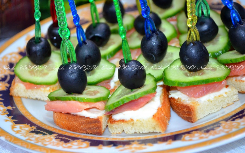 Канапе с красной рыбой и творожным сыром