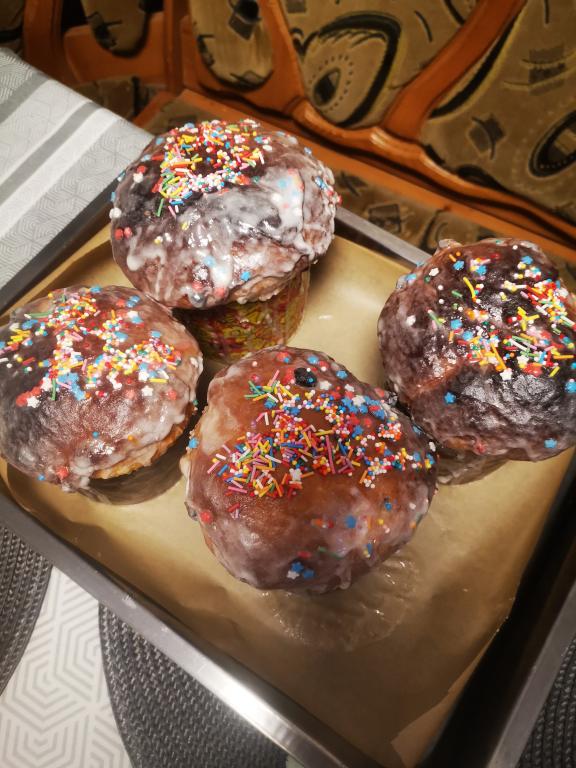 Тесто увеличится в объёме в 2-3 раза. Поставить куличи в разогретую духовку и выпекать при 180 градусах примерно 35-45 минут, ориентируйтесь по своей духовке и объёму ваших форм. Готовность проверить сухой лучинкой. Готовые куличи хорошо остудить.