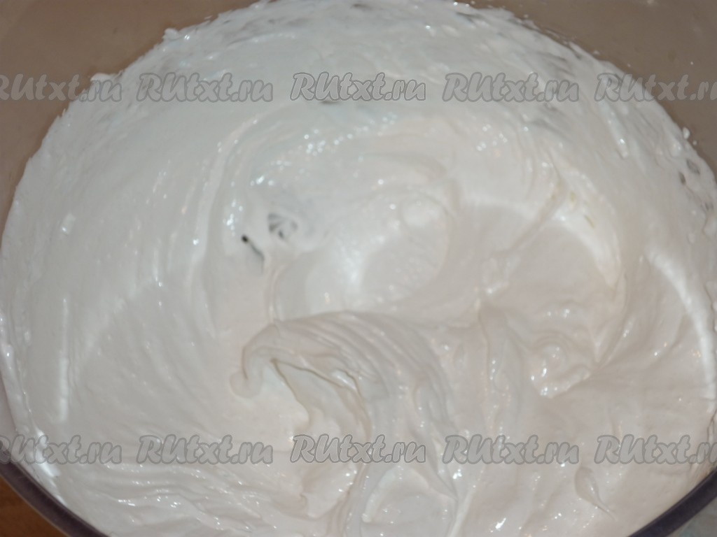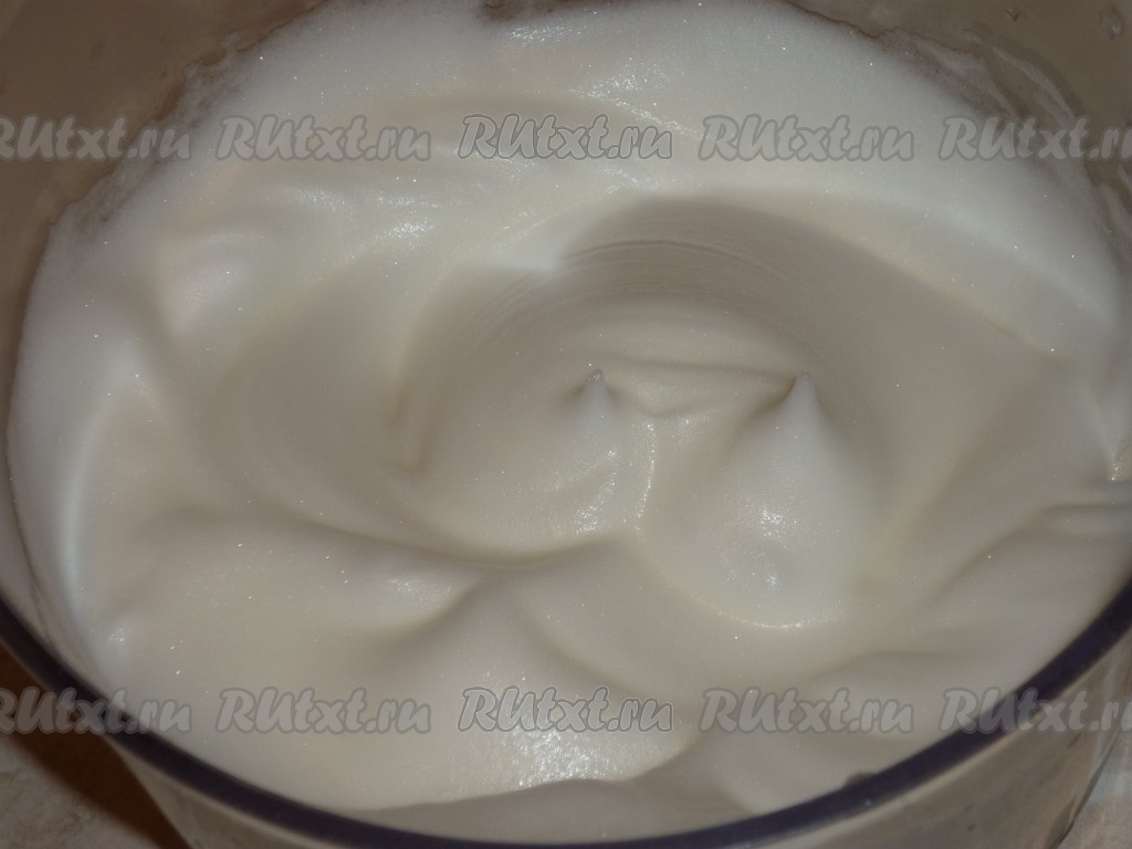 Для приготовления глазури яичные белки взбиваем с сахарной пудрой или сахаром до крепкой пены (чтобы белки лучше взбивались, можно добавить немного лимонного сока или щепотку соли).
