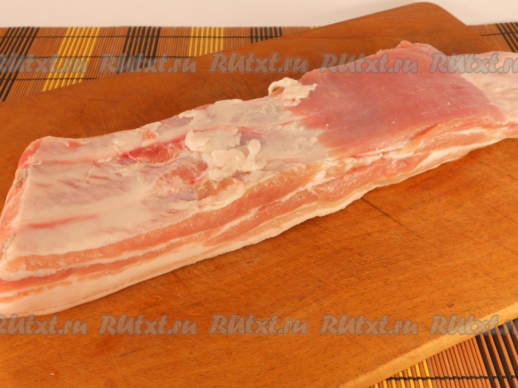 Свиную грудинку помыть и обсушить бумажными полотенцами.