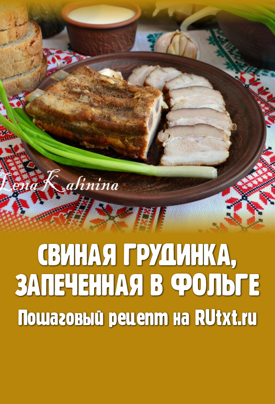 Свиная грудинка, запеченная в фольге, получается необычайно вкусной и ароматной. Такую грудинку можно употреблять в горячем виде в качестве основного блюда. Также хороша грудинка и в холодном виде, как закуска или составляющая часть бутербродов. Готовится просто, результат - отменный!