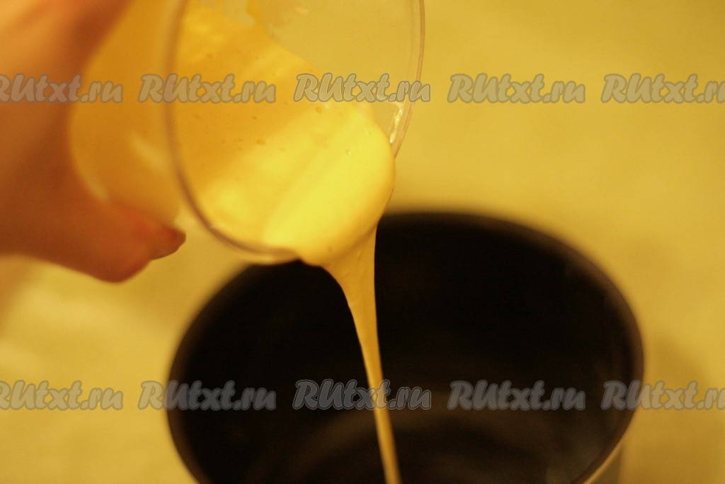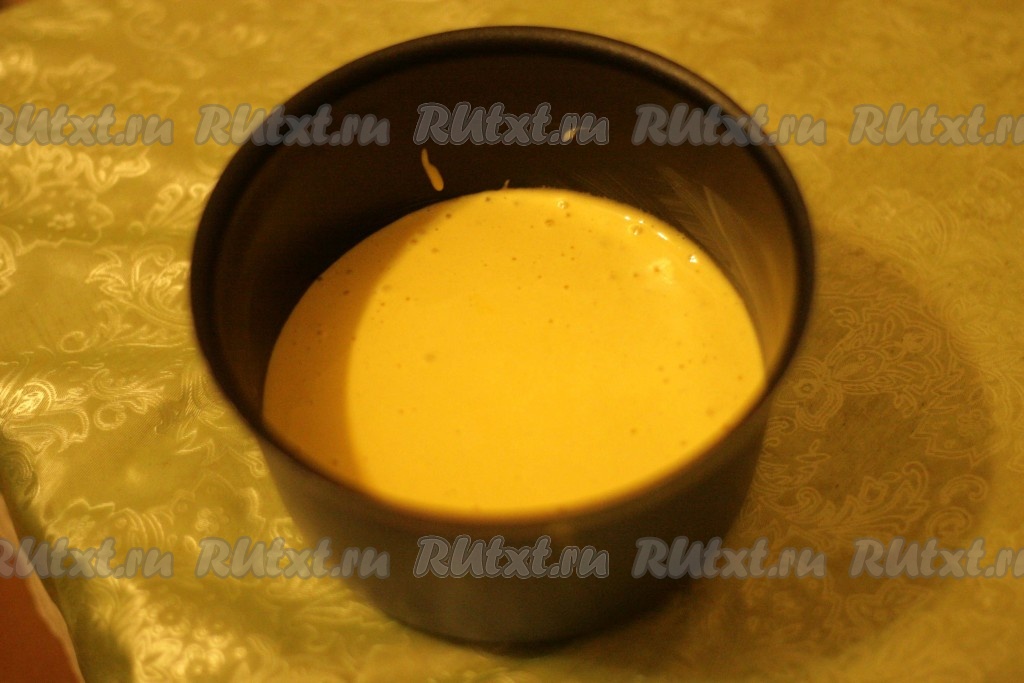 Форму смазать растительным маслом и вылить получившееся тесто.