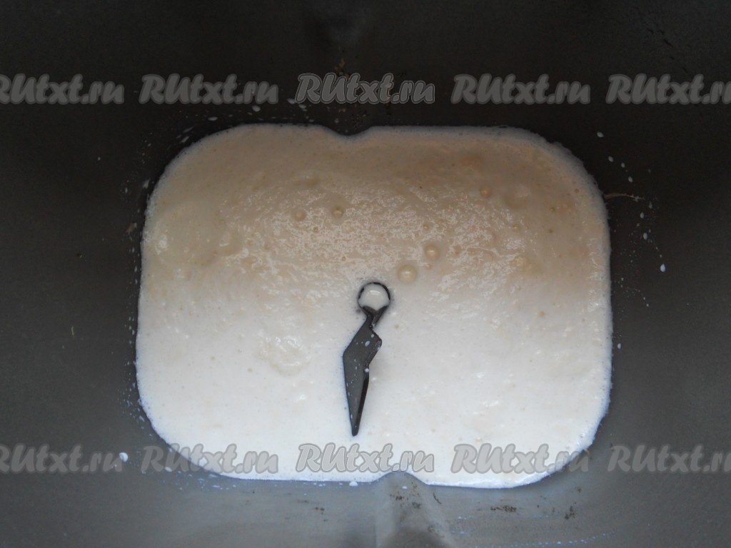 Подошедшую опару вылить в ведерко хлебопечки.