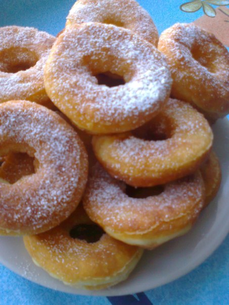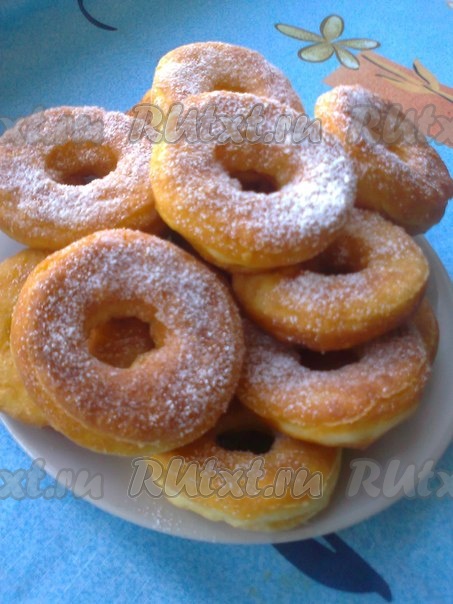 Вкусные, мягкие, воздушные творожные пончики-колечки готовятся очень просто и прекрасно подойдут на завтрак с чашечкой ароматного чая или кофе. Подавать можно с сахарной пудрой, джемом, вареньем, сгущенкой, медом, сметаной.