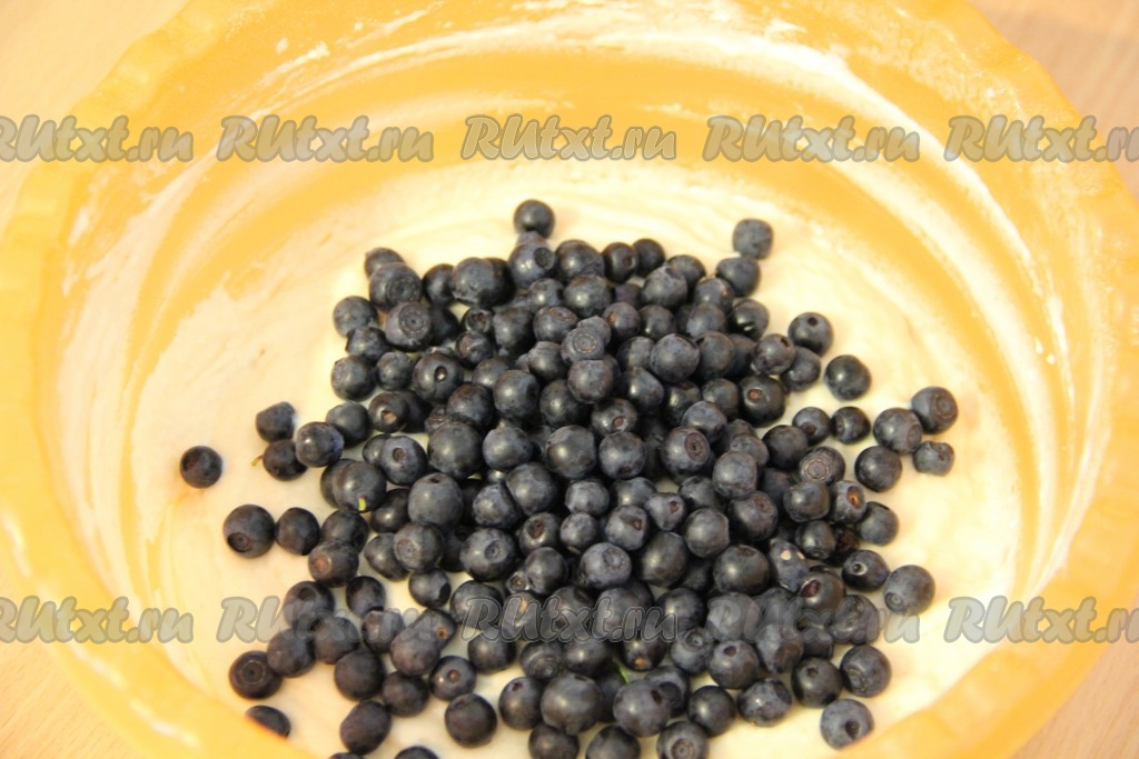 Чернику вымыть, обсушить, выложить в тесто и аккуратно перемешать. Тесто для оладий, замешанных на кефире, получится в меру густым.