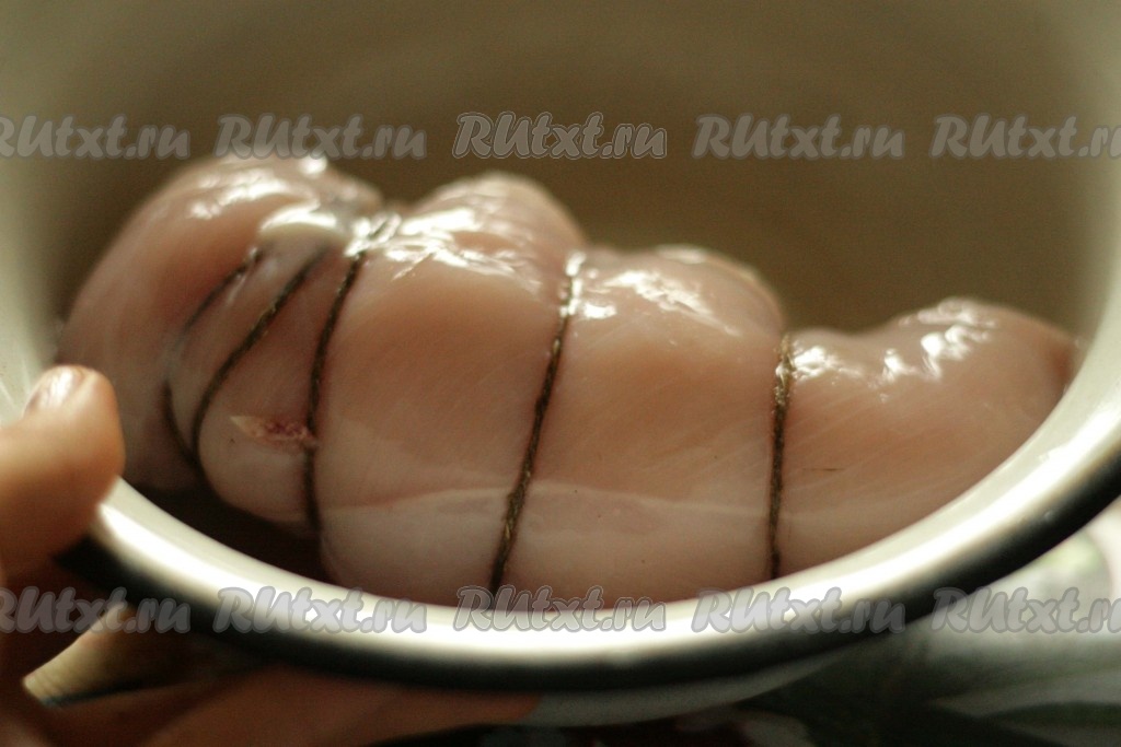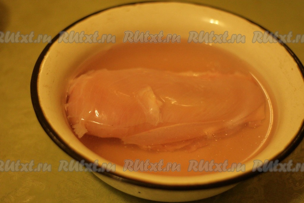 Грудку замочить в рассоле. Пропорции на 1 стакан - 1 чайная ложка соли. Оставить на 2-3 часа.