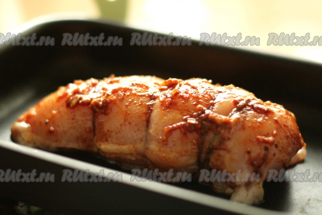 Духовку необходимо разогреть до 250 градусов. Пастрому из курицы запекать 15-20 минут, выключить духовку и оставить там мясо до полного остывания. У этого рецепта только один недостаток - съев кусочек наивкуснейшего мяса, оторваться очень сложно.